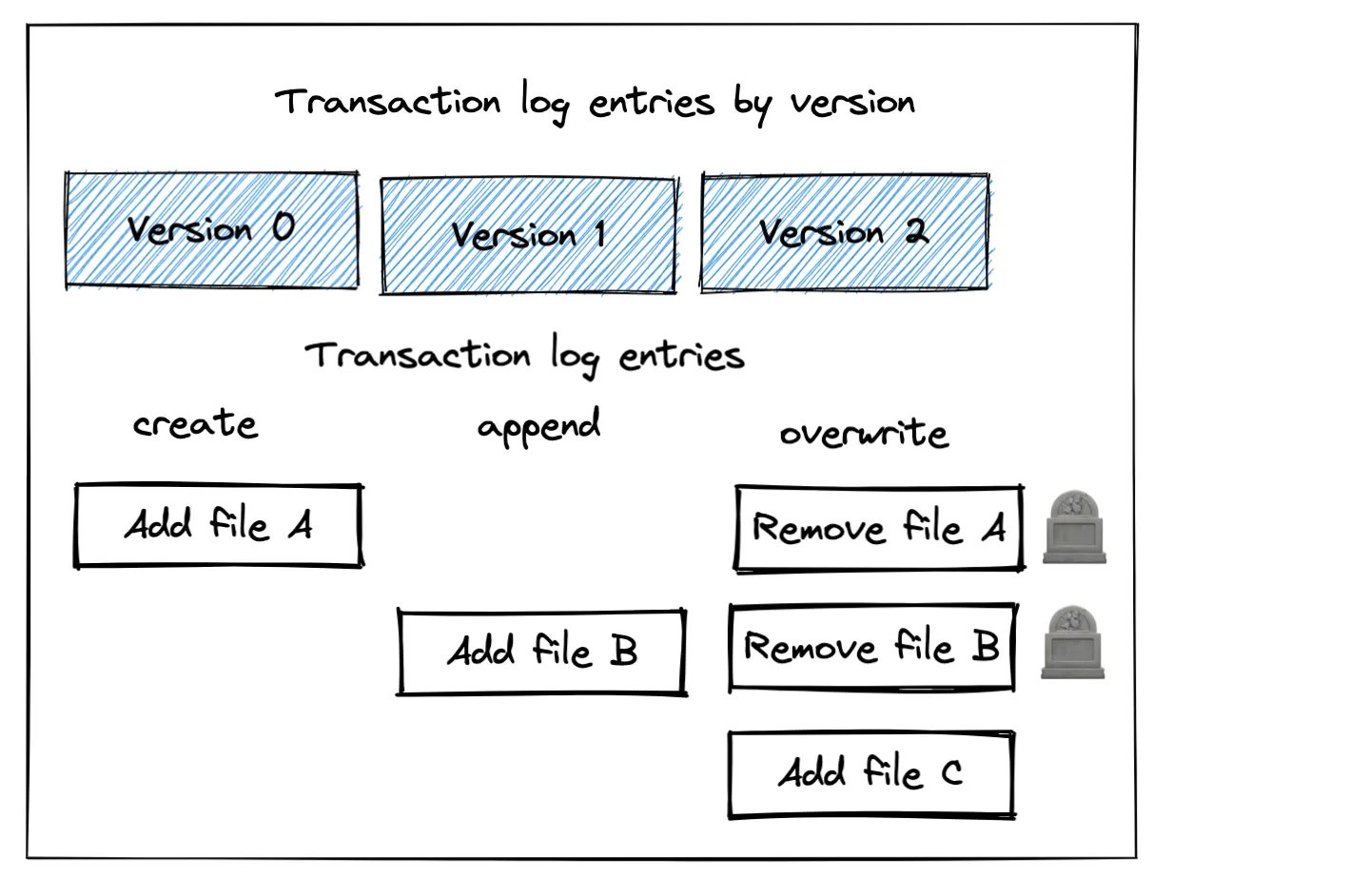 As you can see in the following image, the overwrite operation has added a new file and tombstoned the existing files.